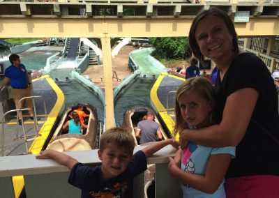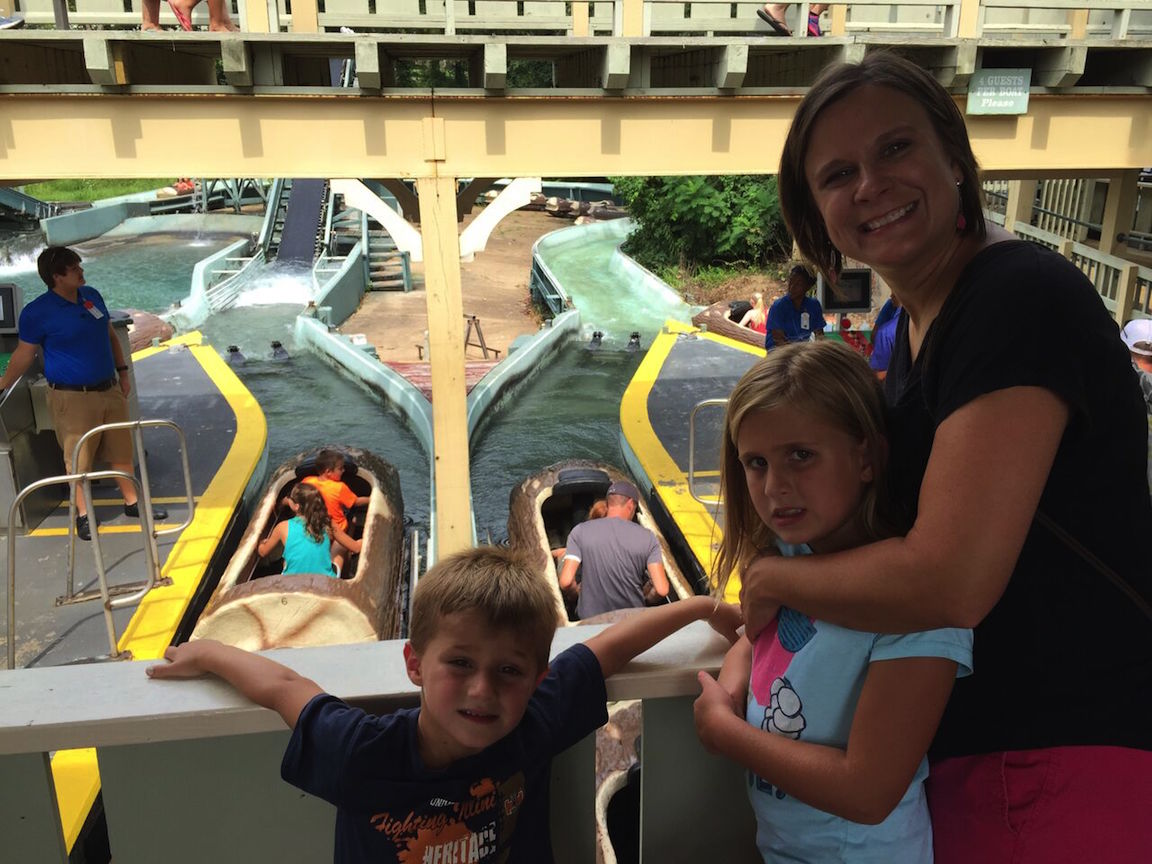 Michelle and the kids at the log flume ride at Six Flags. Bailey wasn't too sure about it...