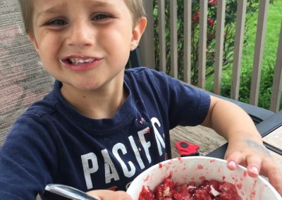 Cole enjoying the perfect summer dessert - strawberry shortcake!