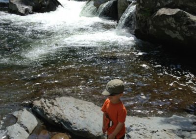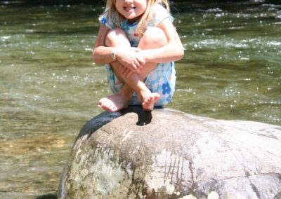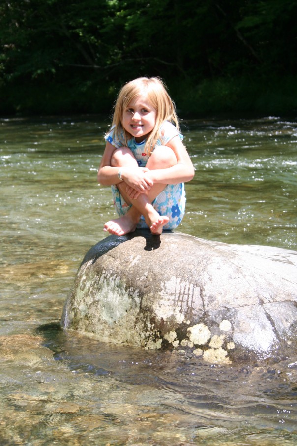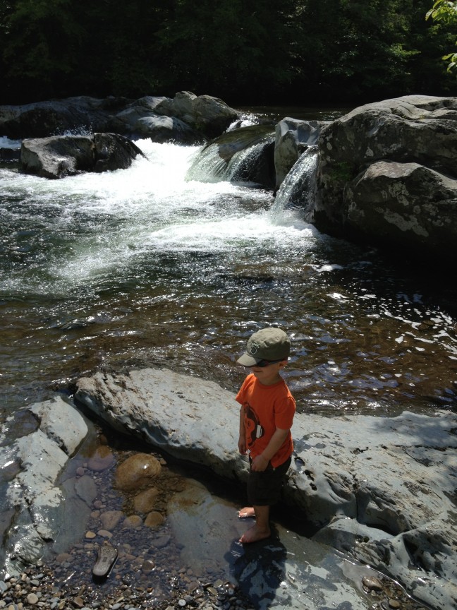 Cole had a ball climbing on the rocks and throwing rocks into the river.