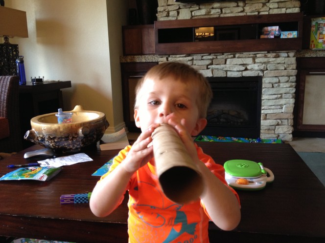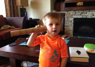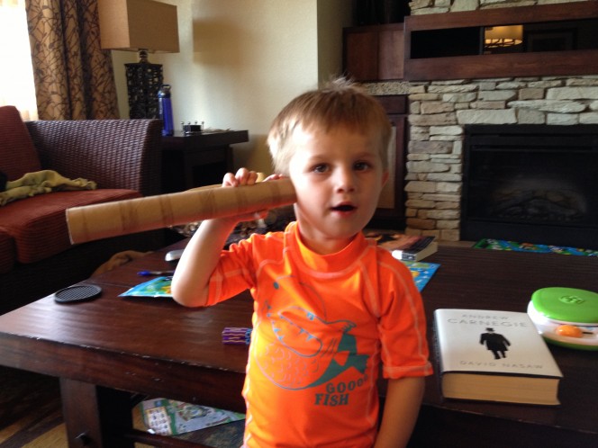 A typical kid. Cole had more fun with the empty paper towel holder than anything else on the trip!