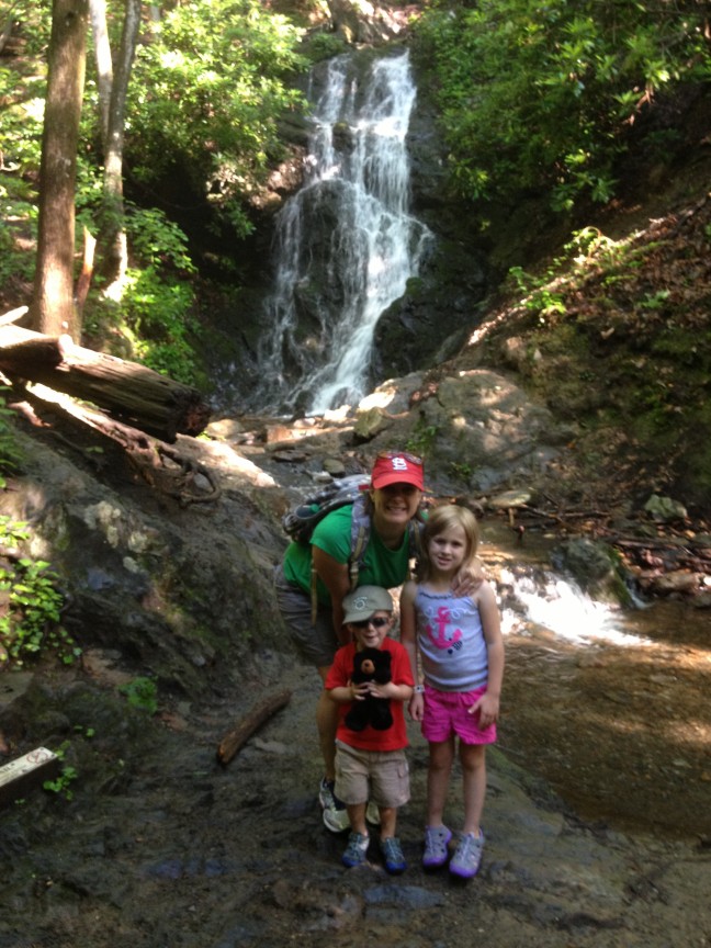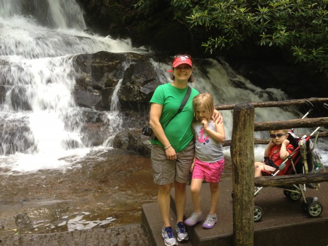 Hike to a waterfall. Quite a workout. Michelle and I took turns pushing the stroller. Plus I carried Bailey on my shoulders part of the time.